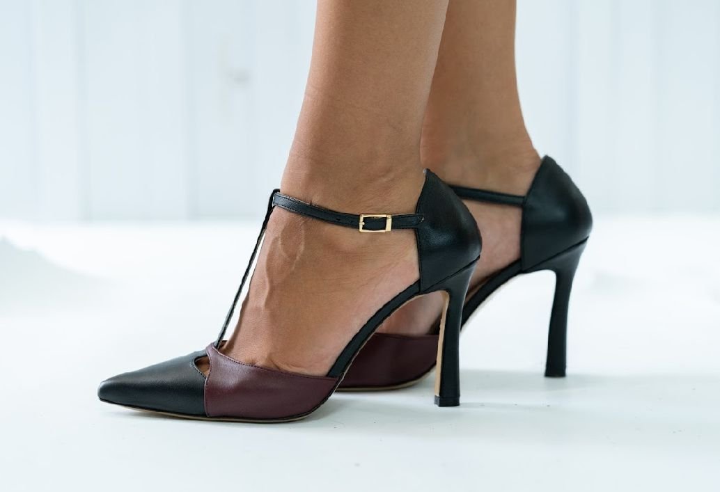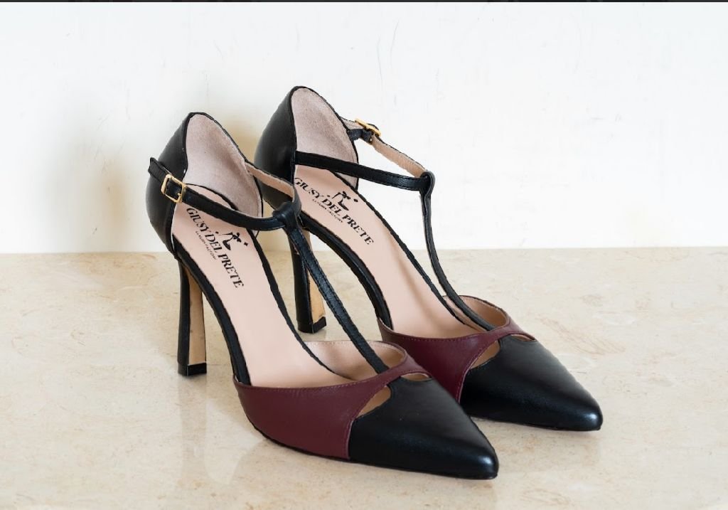 Queste décolleté con tacco alto rappresentano un connubio perfetto tra raffinatezza e carattere. Realizzate in una combinazione armoniosa di nero e bordeaux, offrono un design sofisticato che cattura l’attenzione senza risultare eccessivo. La punta affusolata conferisce una silhouette slanciata e ultra-femminile, mentre il dettaglio T-strap – un cinturino centrale che si collega alla caviglia – dona eleganza, stabilità e un fascino retrò rivisitato in chiave moderna. I bordi sottili e la chiusura regolabile con fibbia dorata aggiungono un tocco luminoso e ricercato. Il mix cromatico, declinato in due blocchi di colore, valorizza la forma del piede e rende la scarpa estremamente versatile, perfetta sia per look serali che per look professionali.