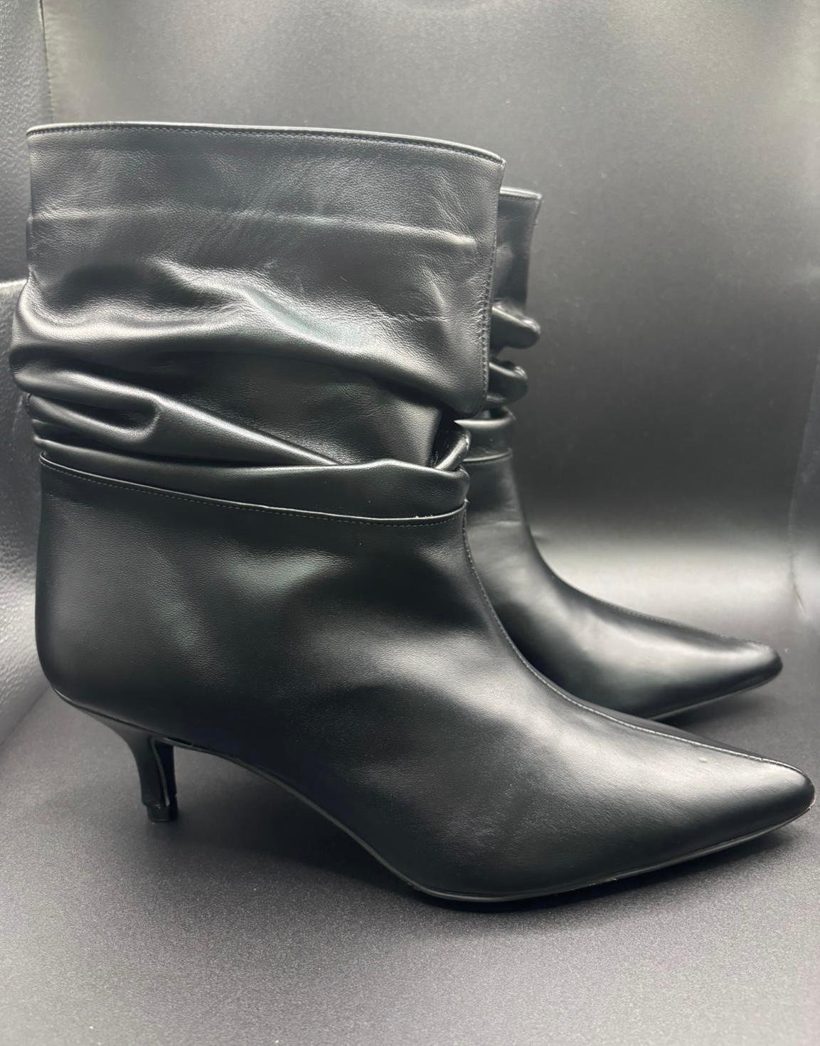 La tomaia leggermente arricciata crea un effetto morbido e sofisticato, rendendo lo stivaletto perfetto sia per look minimal chic sia per outfit più ricercati.