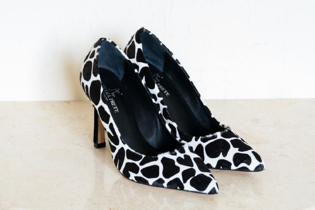 Queste décolleté rappresentano un perfetto equilibrio tra audacia e raffinatezza. Il modello presenta una stampa animalier bianco e nero, che richiama un motivo maculato astratto, rendendo ogni passo un dettaglio di stile unico e accattivante. La punta affusolata dona una linea slanciata ed elegante, mentre il tacco alto e sottile definisce una postura femminile e ricercata. Il materiale, dal finish morbido e lievemente peloso, aggiunge una nota di originalità e carattere, conferendo alla scarpa un aspetto lussuoso e distintivo. L’interno, realizzato in pelle scura e avvolgente, assicura comfort e stabilità, rendendo queste décolleté non solo scenografiche ma anche piacevoli da indossare. Perfette per chi desidera un accessorio dall’impatto visivo forte, senza rinunciare all’eleganza classica del modello a punta.