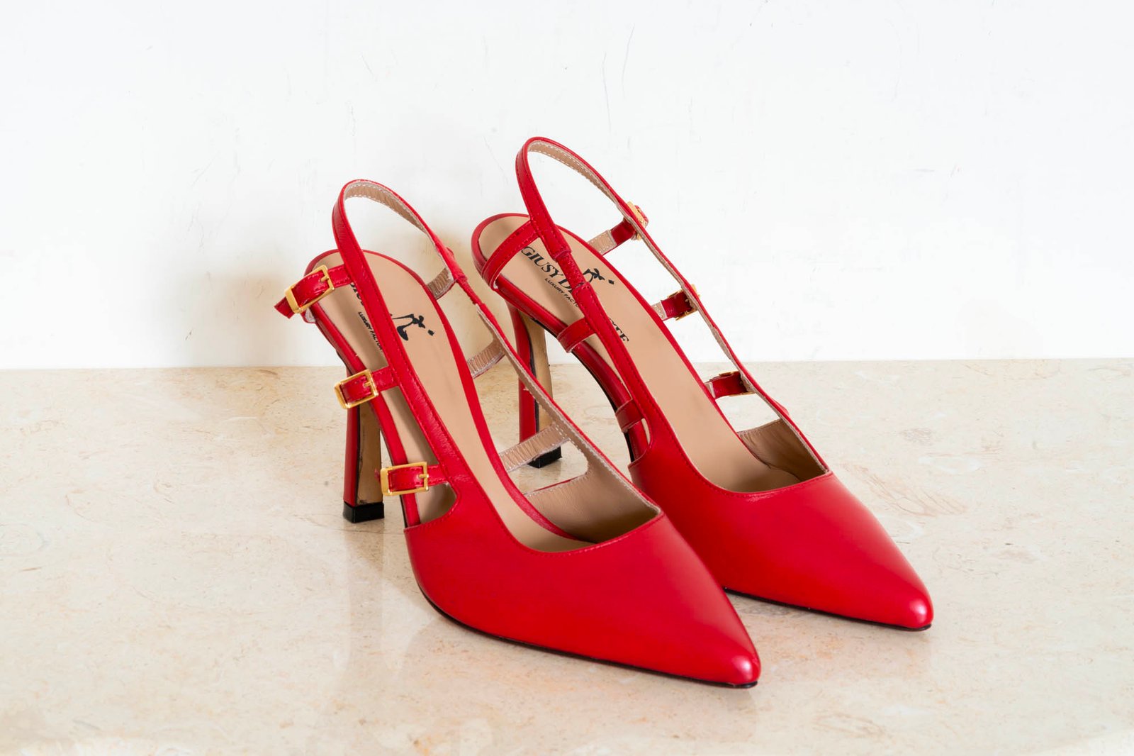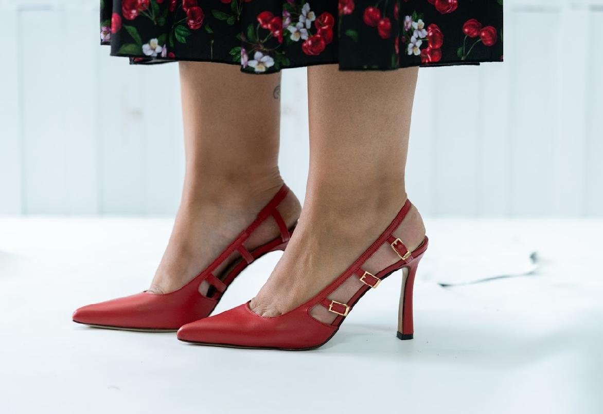 Le décolleté slingback in pelle rossa combinano femminilità e carattere in un design raffinato e deciso. La punta sfilata e i tre cinturini con fibbie regolabili donano eleganza e sostegno, mentre il sottopiede e la fodera in pelle assicurano comfort per tutta la giornata.