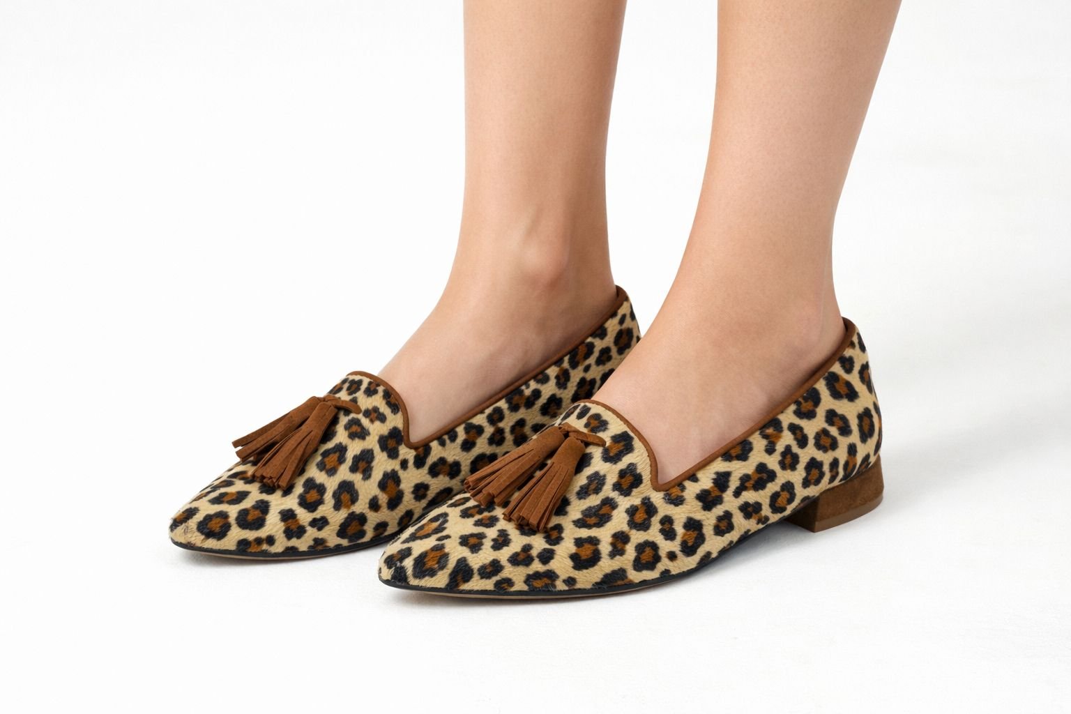 Eleganti e distintivi, queste ballerine con nappine leopardati uniscono stile classico e carattere deciso. La tomaia con fantasia cavallino leopardata dona personalità alla scarpa, mentre le nappine decorative sul davanti aggiungono un dettaglio raffinato e senza tempo.